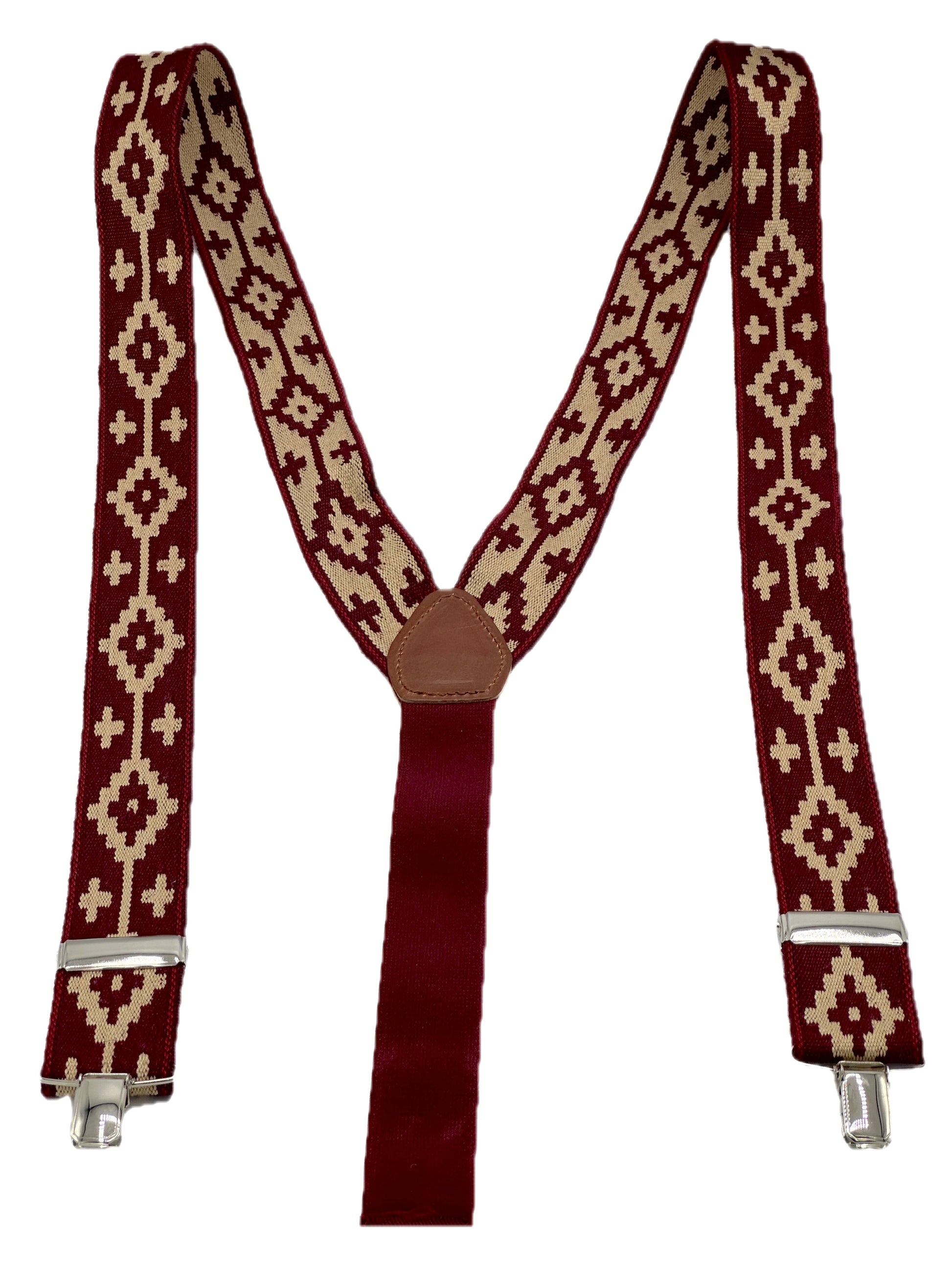 Tirantes con cinta no elástica guarda pampa, 100% algodón. Detalles en piel natural con elástico burdeos.