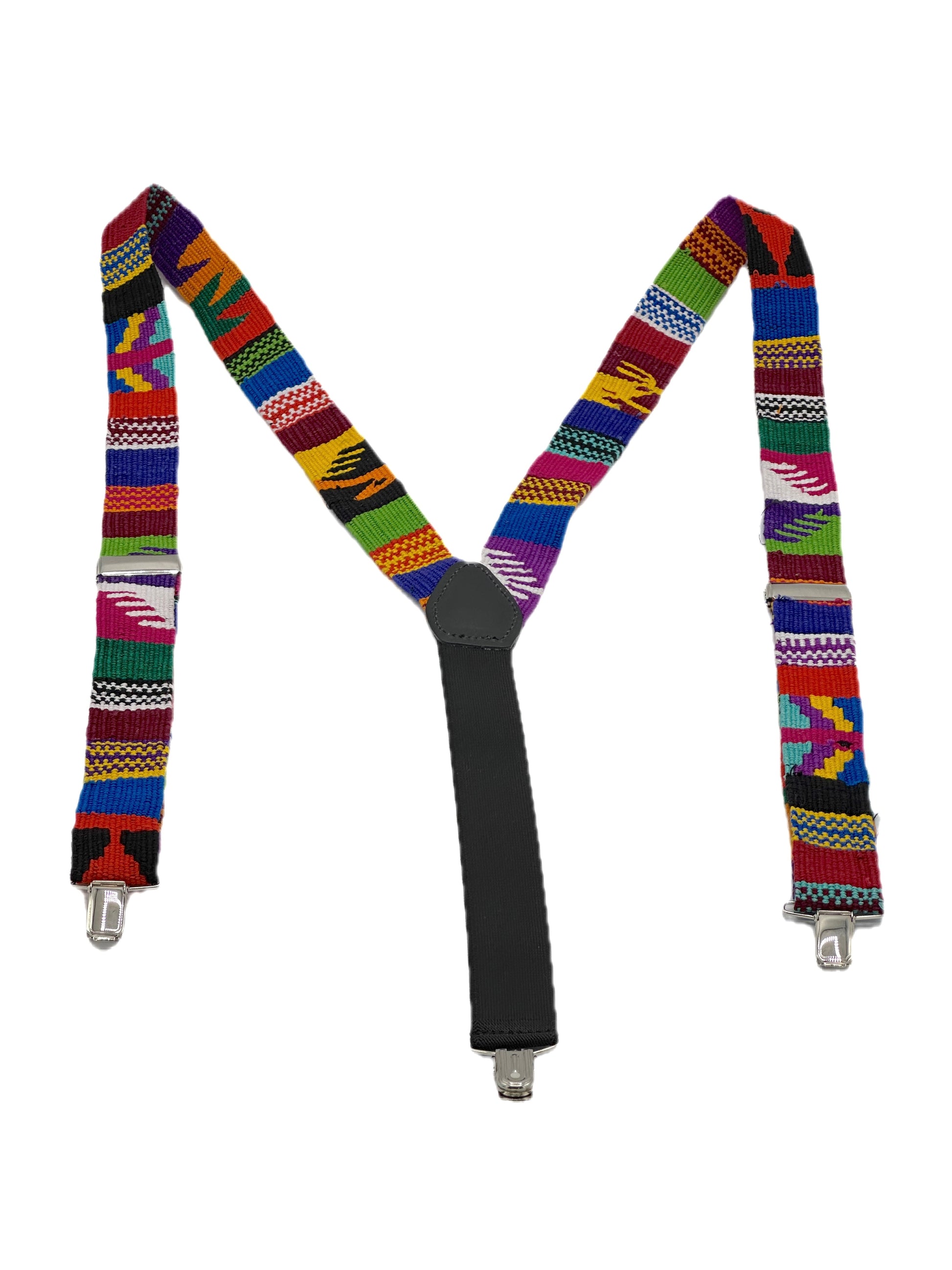 Tirantes para adultos con cinta étnica guatemalteca , 100% algodón tejida en telares por artesanos. Detalles en piel.